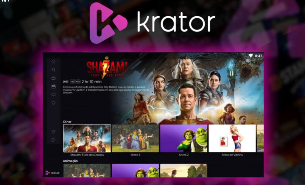 A Krator é um serviço de streaming com o sistema exclusivo de TV On line desenvolvido sob uma nova plataforma de transmissão de sinal muito mais leve e rápida, que se adapta a sua rede de internet, proporcionando uma estabilidade de sinal jamais vista antes no mercado. Além desse novo sistema revolucionador, o Multi-rate utilizado pela netflix e as prinicipais plataformas de streaming, a Krator possui o maior conteúdo de canais do Brasil, incluindo também em sua grade, Canais da América Latina, Estados Unidos e Europa. O Aplicativo estará Disponível em breve para Android TV, Mi Stick, Fire Stick, Tv Box e Celular.